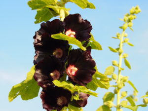 Anglicky: (Black-, Pink-, White-) Hollyhock