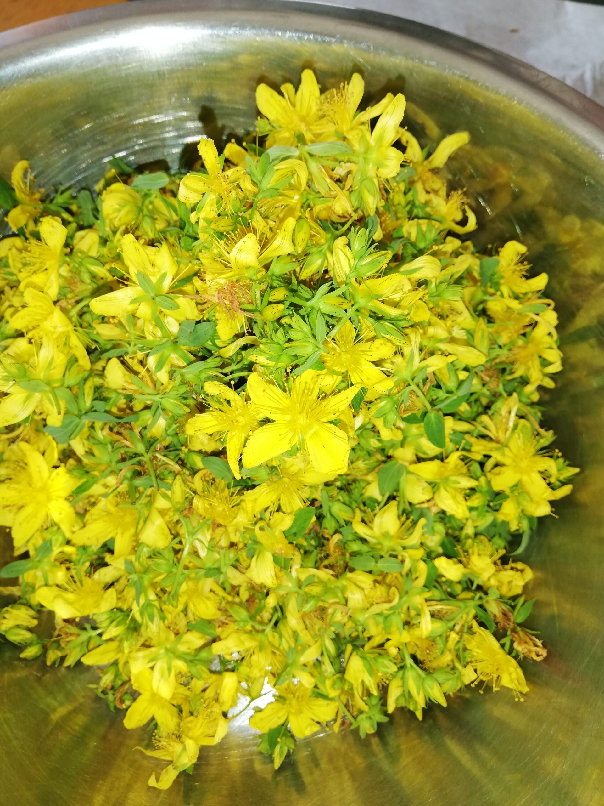 Potřebujeme třezalkové květy nebo kvetoucí nať, olivový za studena lisovaný olej (případně slunečnicový, sezamový), popř. vitamín E